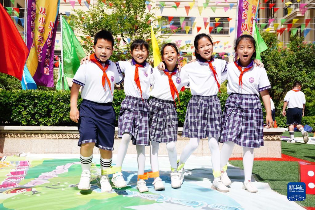 当日,为迎接六一国际儿童节,营造健康快乐的校园文化,济南市槐荫区教育部门开展以“文明游戏 快乐生活”为主题的红领巾游戏节,孩子们在互动游戏中积极协作,展现出阳光向上、朝气蓬勃的精神面貌。
