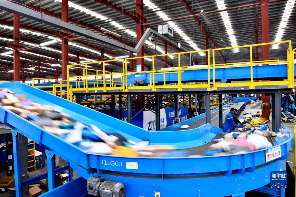 在临沂国际陆港智慧物流园,自动分拣系统在分拣快递包裹(2020年11月21日摄)。