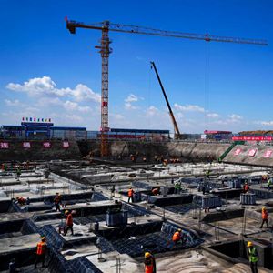 5月31日,工人在吉林长春国家农业高新技术产业示范区科创中心项目现场施工。