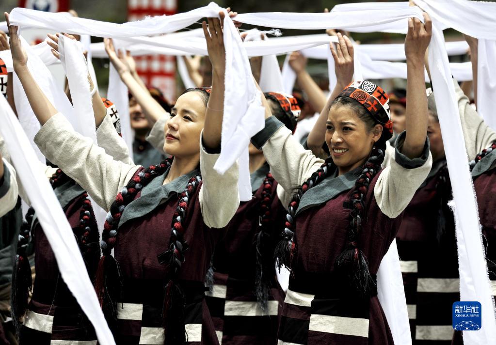 5月31日,演员在隆子县玉麦乡文化广场表演歌舞剧《天边格桑花》。