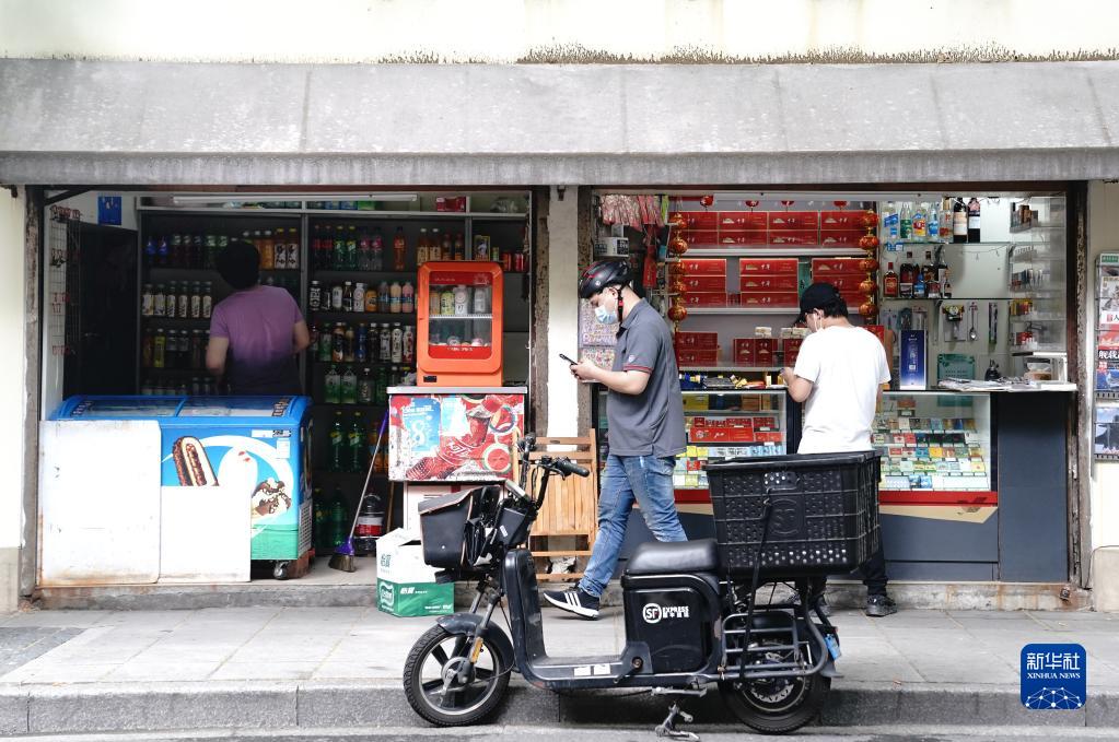 6月1日,市民在上海街头的杂货店内购买商品。 新华社记者 丁汀 摄