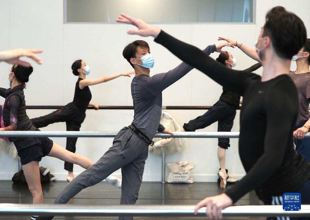 6月1日上午在上海芭蕾舞团排练厅拍摄的复工后首堂基础训练课。 新华社记者 任珑 摄