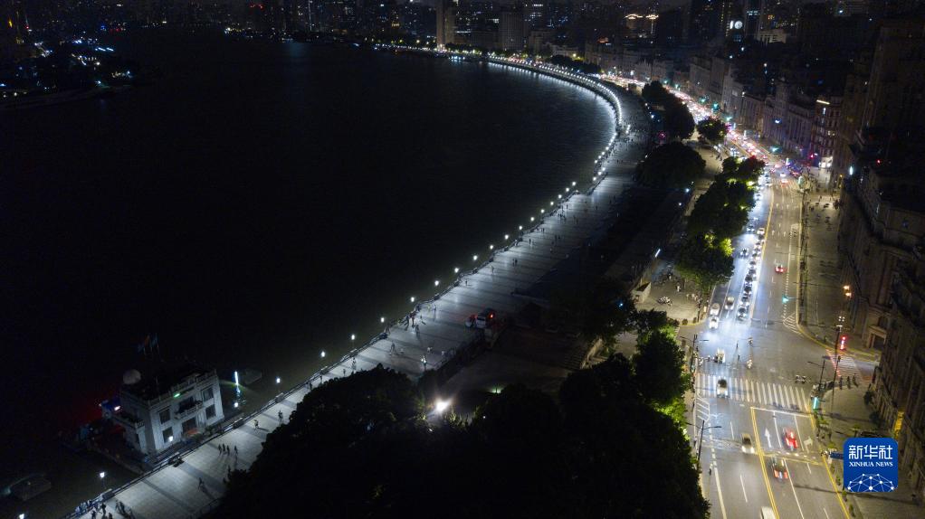6月1日凌晨的外滩(无人机照片)。 新华社记者 金立旺 摄