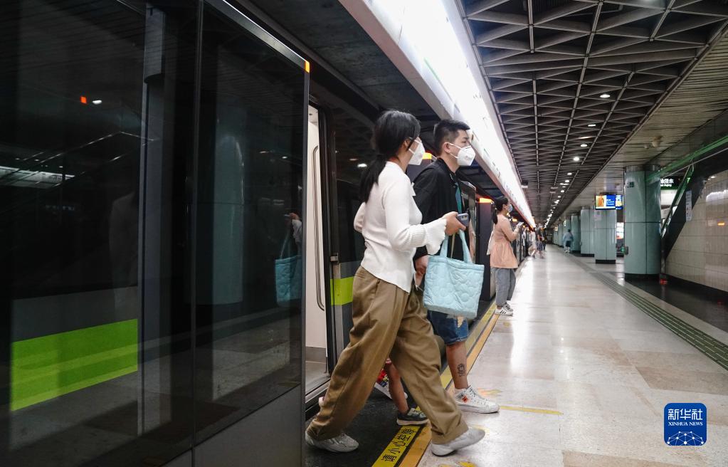 6月1日,乘客乘地铁抵达南京东路站。 新华社记者 丁汀 摄