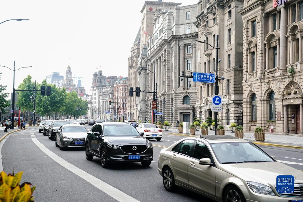 6月1日在上海外滩中山东一路拍摄的街头景象。 新华社记者 丁汀 摄