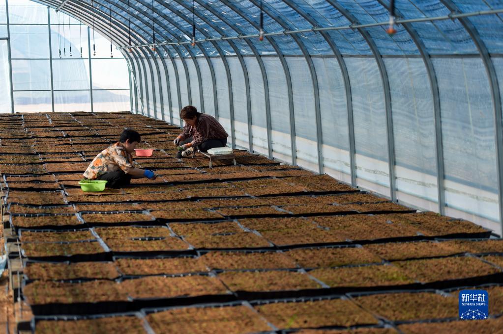 5月31日,在内蒙古薯都裕农种业科技有限公司的原原种生产大棚,工作人员在栽种马铃薯脱毒苗。