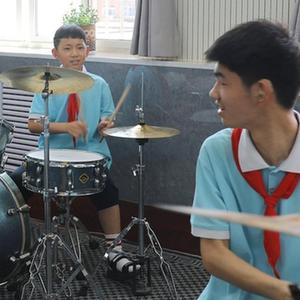 2020年,学校精心打造了专用音乐教室,学生们开始了由易到难的系统练习。截至目前,鼓乐队可以完成近10首曲目表演。