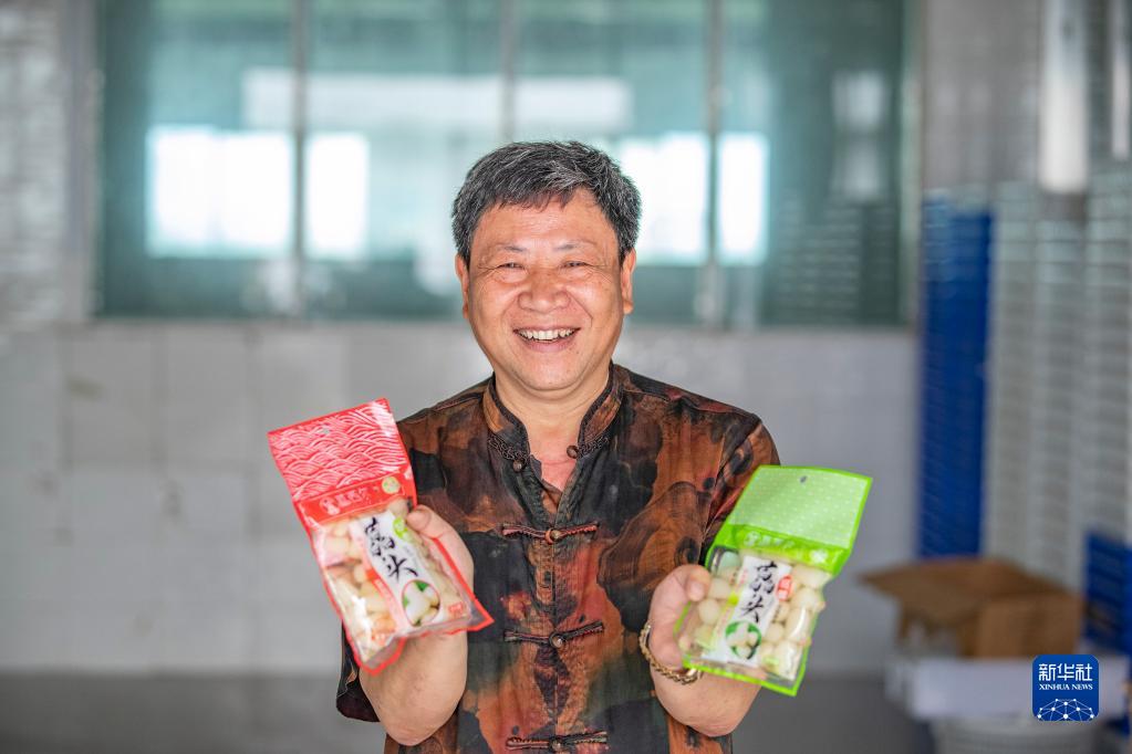 5月30日,重庆丰都明富实业有限公司负责人展示藠头产品。