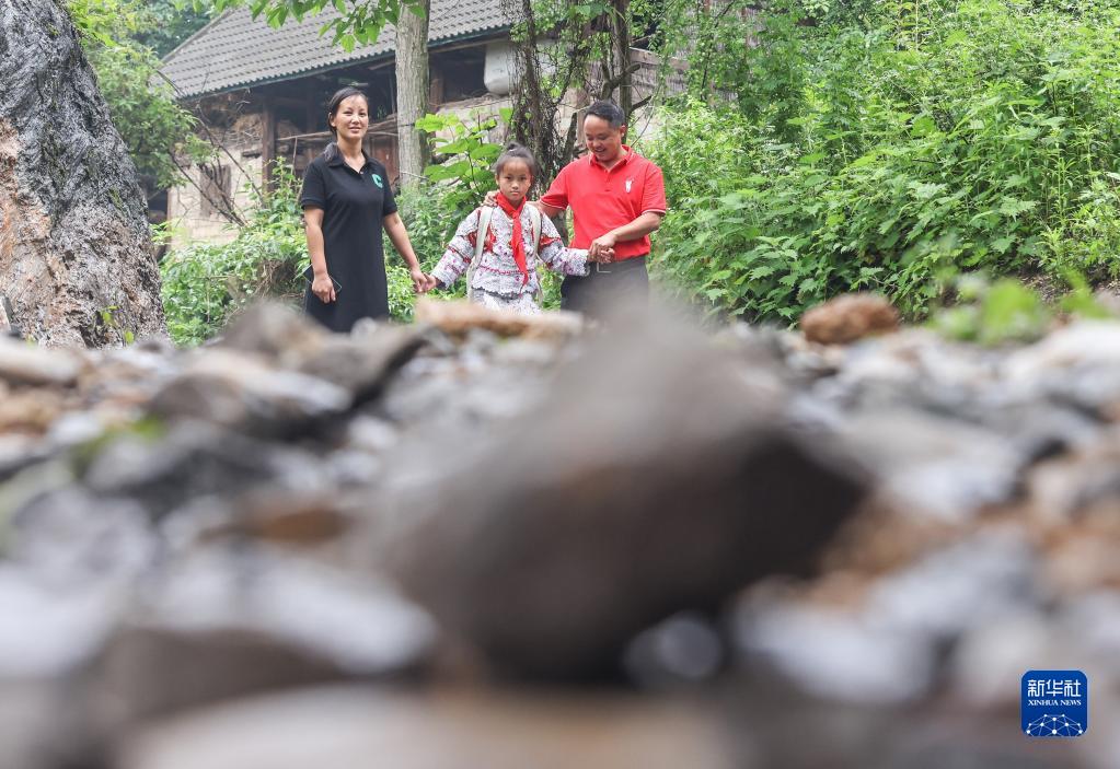 6月1日,杨雅萌在父母的陪伴下去上学。
