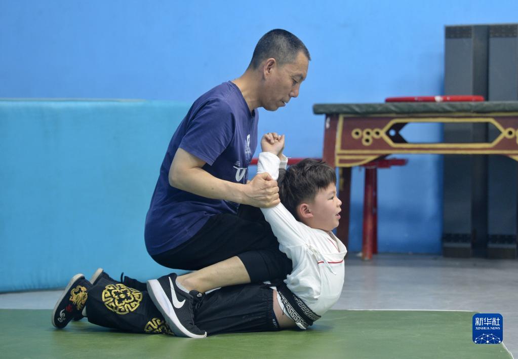 5月27日晚,华华在师父张连僧的带领下练基本功。