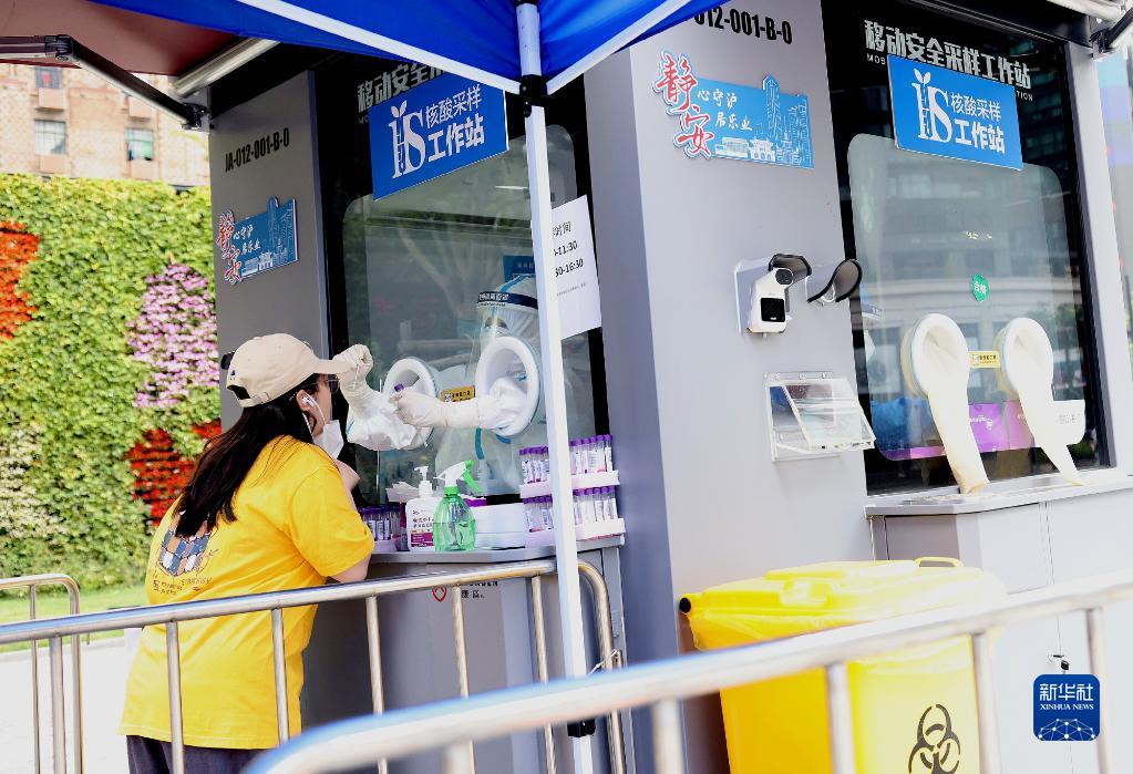 6月1日,市民在上海市南京西路一处常态化核酸采样点进行核酸采样。 新华社记者 陈飞 摄