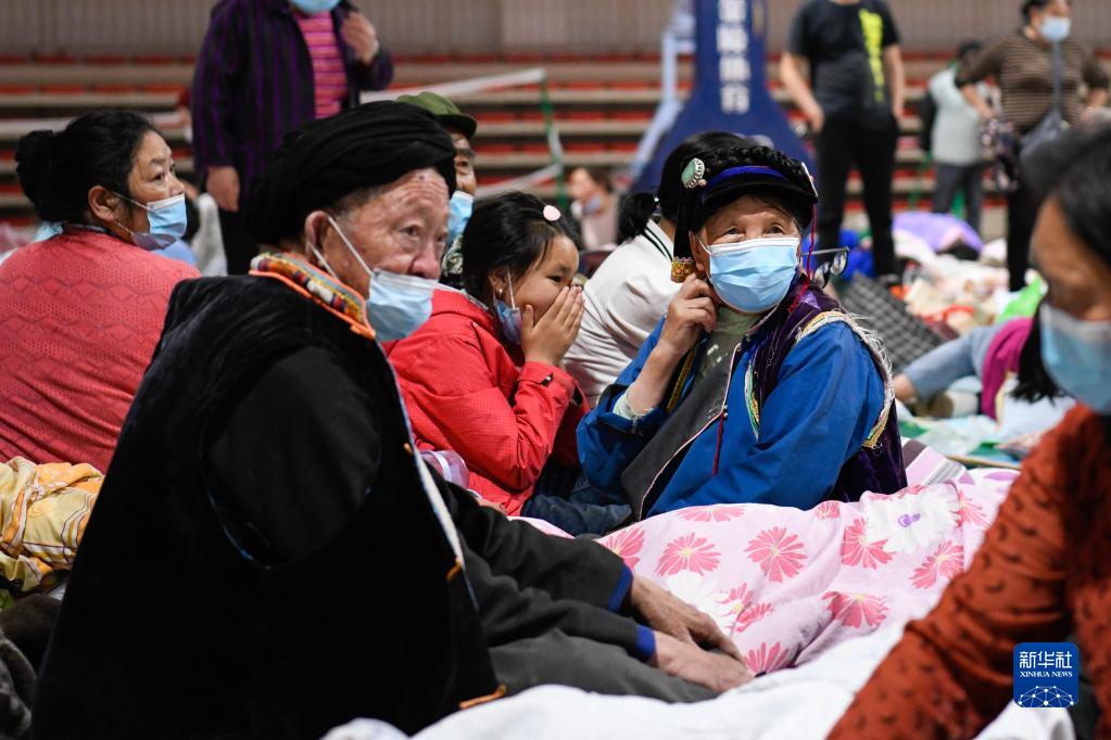 6月2日凌晨,受灾群众在四川宝兴县体育馆安置点休息。