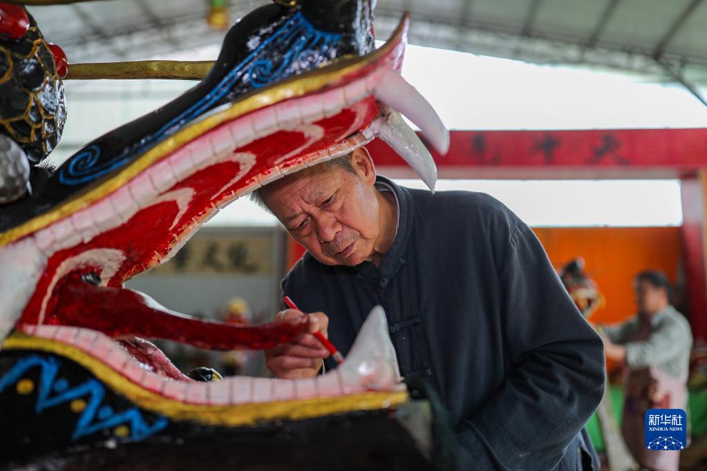 5月28日,手工艺人在贵州省黔东南苗族侗族自治州镇远县㵲阳镇制作龙舟“龙头”。
