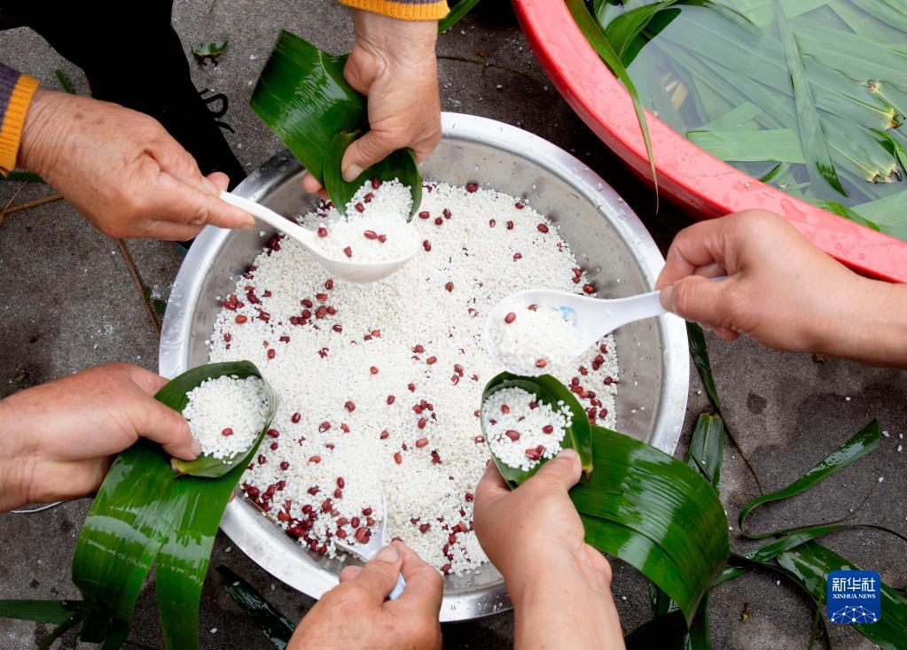5月29日,江苏省海安市墩头镇新舍村村民在包粽子。