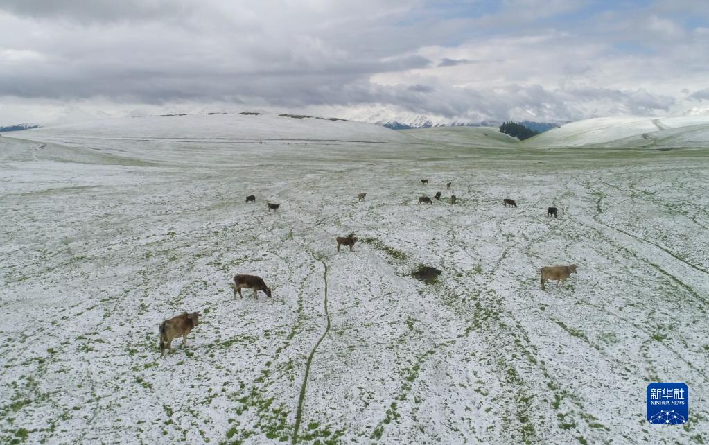 5月31日晚,位于新疆伊犁哈萨克自治州特克斯县的喀拉峻大草原迎来一场降雪,本是五色花海的草原披上了一层银装。