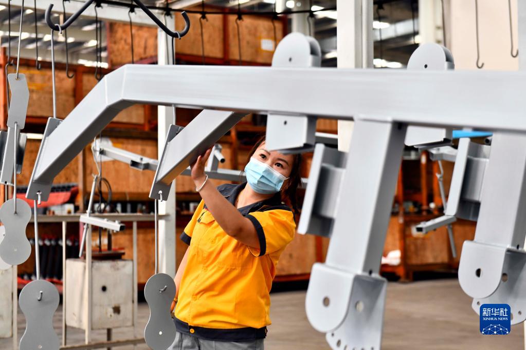 6月1日,山东罗赛罗德健康产业有限公司的工作人员在加工健身器材。