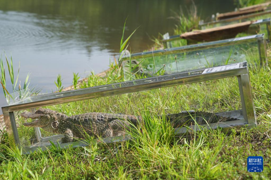 6月2日在安徽扬子鳄国家级自然保护区郎溪县高井庙片区拍摄的等待放归的扬子鳄。
