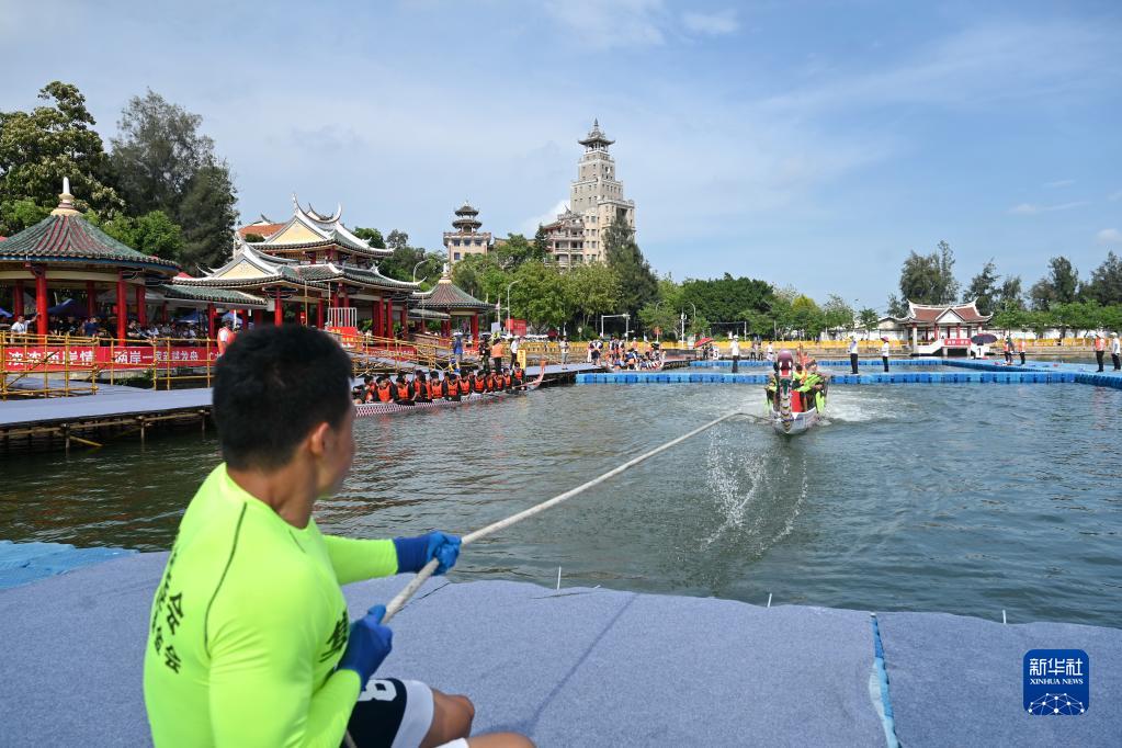 当日,“龙腾虎跃”2022海峡两岸赛龙舟活动在福建厦门举行,两岸41支参赛队的千余名选手乘风逐浪、奋勇争先。