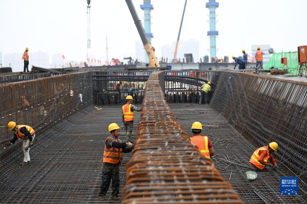 6月3日,施工人员在中铁四局引江济淮工程江淮沟通段青龙桥项目现场作业。
