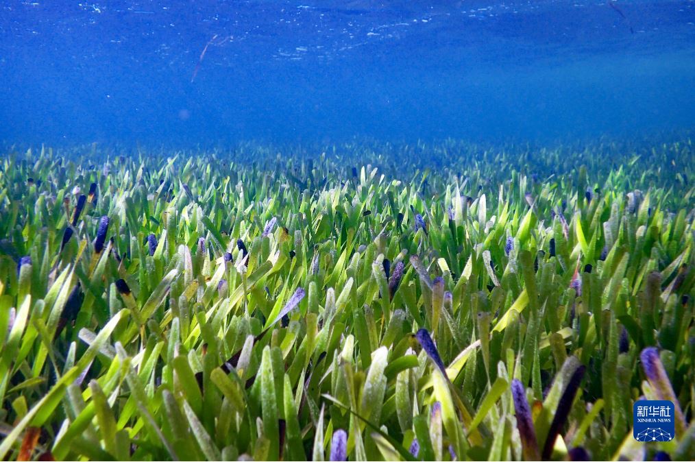 这张西澳大利亚大学6月1日提供的照片显示的是西澳大利亚州鲨鱼湾的海草草甸。