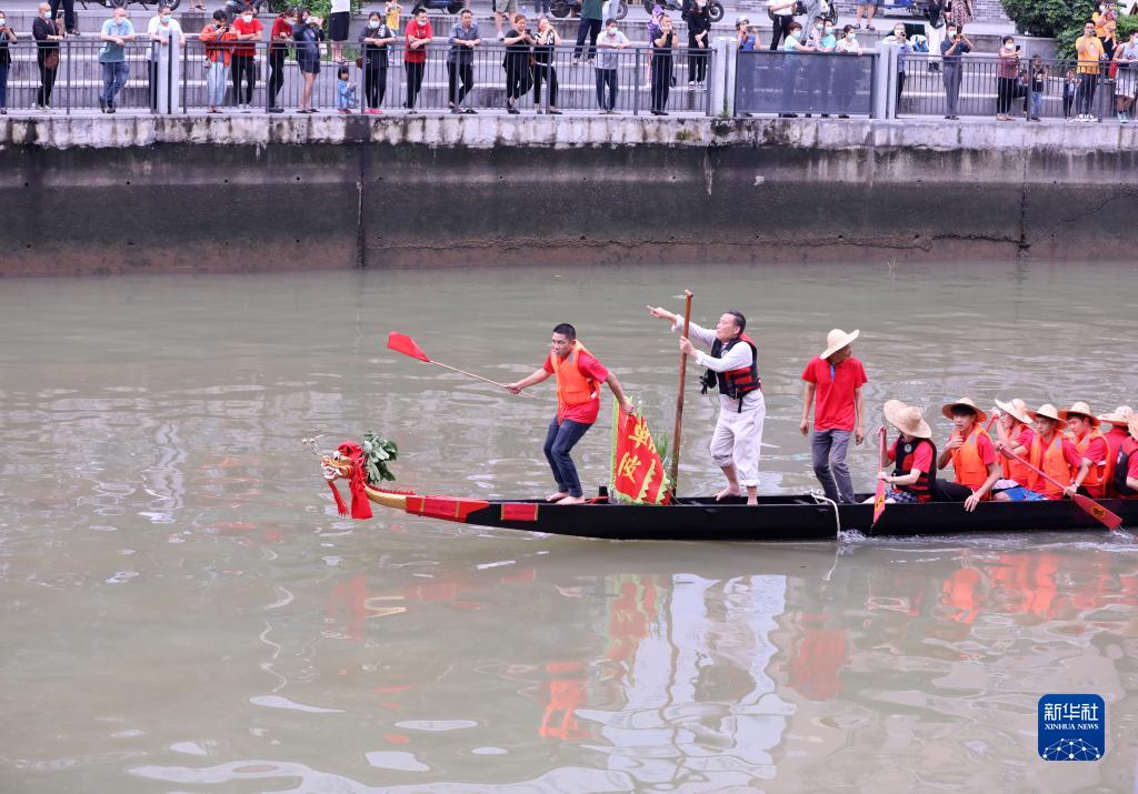 5月14日,正式骏水的新“东坡号”龙舟在广州市天河区车陂村河涌游龙。