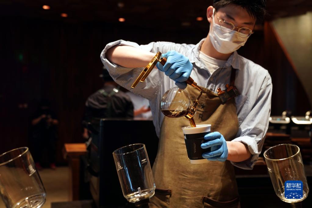 当日,星巴克在中国最大的门店——星巴克臻选上海烘焙工坊(简称上海烘焙工坊)恢复营业。根据疫情防控要求,上海烘焙工坊以限流开放的方式,为顾客提供“到店外带”和“在线点,到店取”等服务。据介绍,星巴克在上海的门店超过900家,目前有近600家已恢复营业。