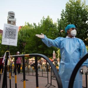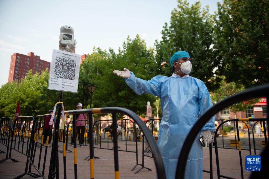 6月3日,张旭引导前来进行核酸采样的居民扫描北京健康宝。