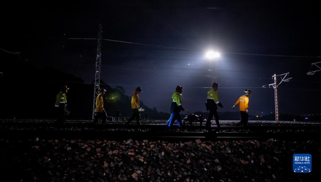 中国铁路昆明局集团普洱基础设施段的工人在施工结束后返回(6月2日摄)。
