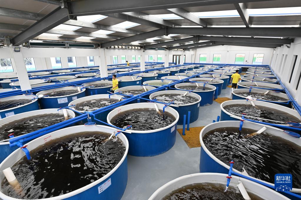 为了保护生态环境,近年来,文昌市将生态红线内195户养殖户进行清退,建设现代化渔业产业园,探索多层养殖模式,让水产养殖“上楼”,推动渔业产业绿色转型。冯家湾现代化渔业产业园占地近7000亩,园区集中取水,减少岸滩破坏,同时对养殖尾水进行统一治理,确保达标排放。目前园区已引进16家养殖企业和科研机构。
