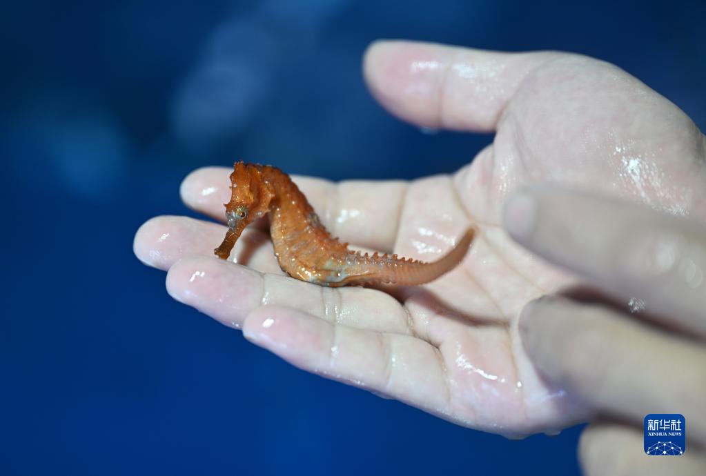 5月31日,工作人员在文昌冯家湾现代化渔业产业园养殖示范厂房里查看海马生长情况。