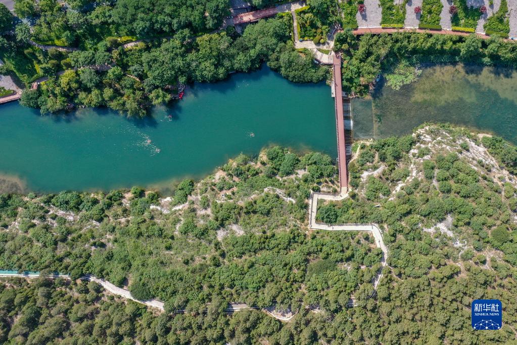 6月3日拍摄的济南历阳湖公园(无人机照片)。