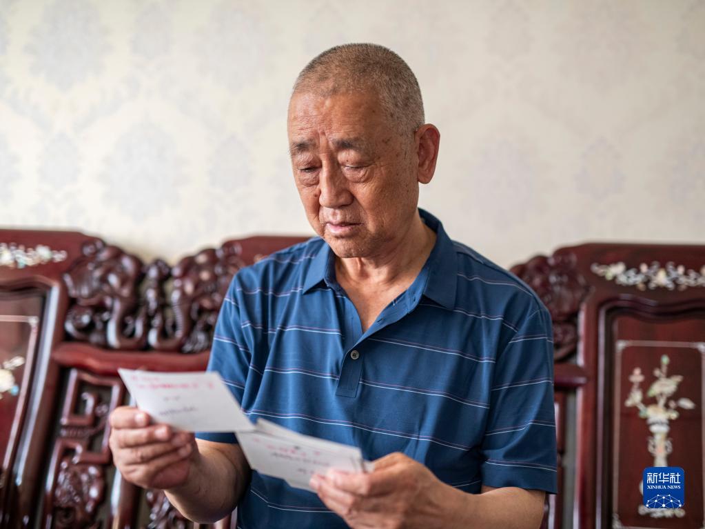 在位于四川成都市的家中,已经退休的李纯禄在翻看老照片(6月3日摄)。