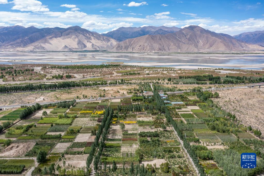 这是边久经营的位于西藏山南市扎囊县的苗圃,这里曾经是一片沙砾地(5月27日摄,无人机照片)。