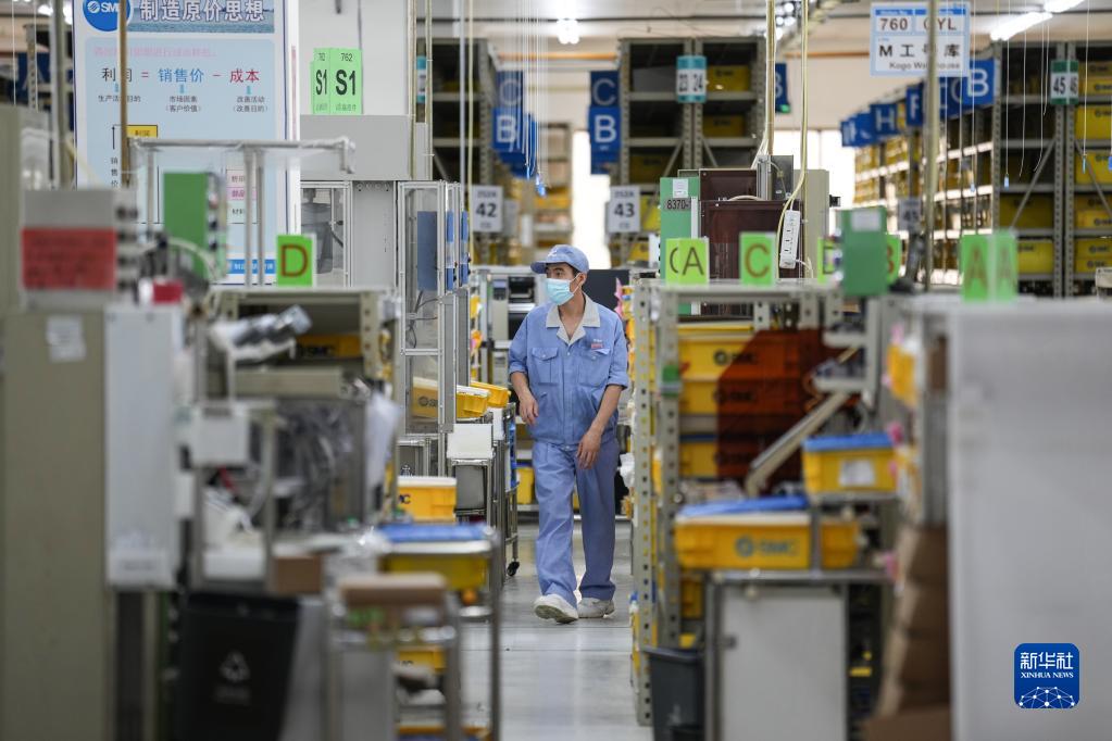 6月4日,在位于北京经开区的SMC(中国)有限公司厂房内,工人正在工作。