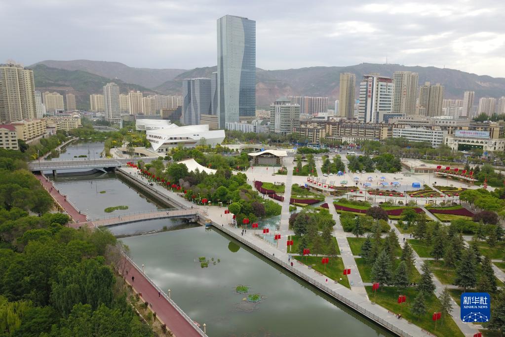 这是6月2日在西宁市拍摄的南川河及中心广场景象(无人机照片)。