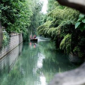 6月4日,环卫工人在江苏苏州吉庆河上进行河面清洁作业。