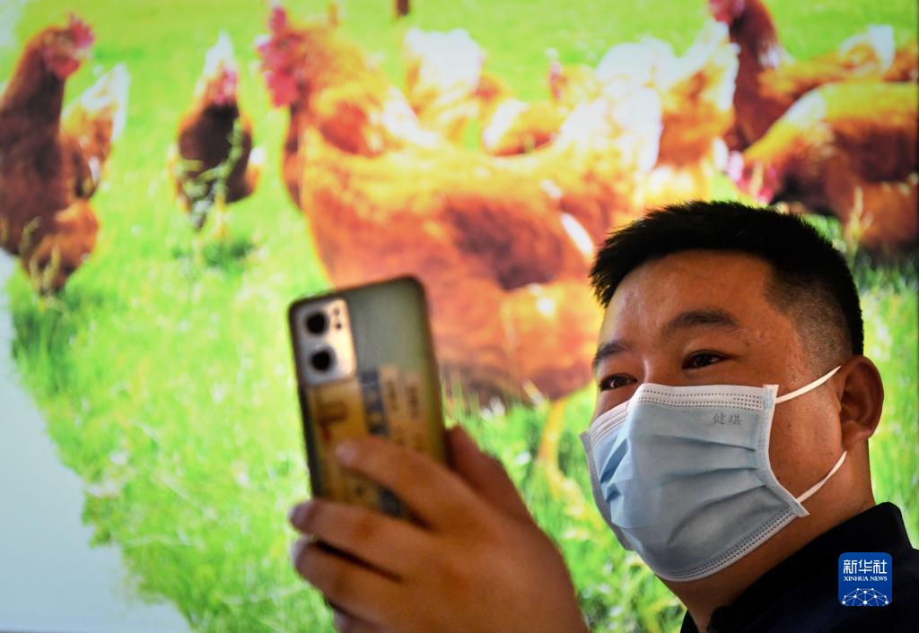张占领在位于郑州市二七区的店铺内进行短视频平台直播推广(5月31日摄)。