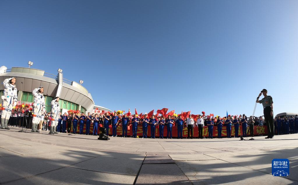 6月5日,神舟十四号载人飞行任务航天员乘组出征仪式在酒泉卫星发射中心问天阁广场举行。
