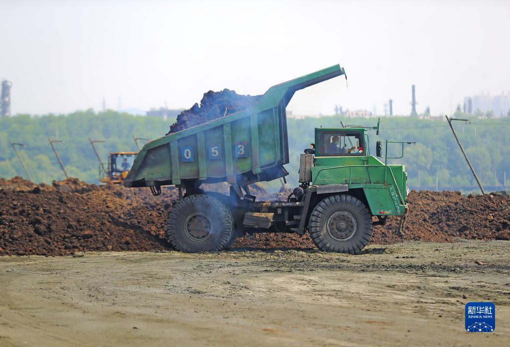 6月2日,工程车辆在西露天矿内进行回填覆土作业。