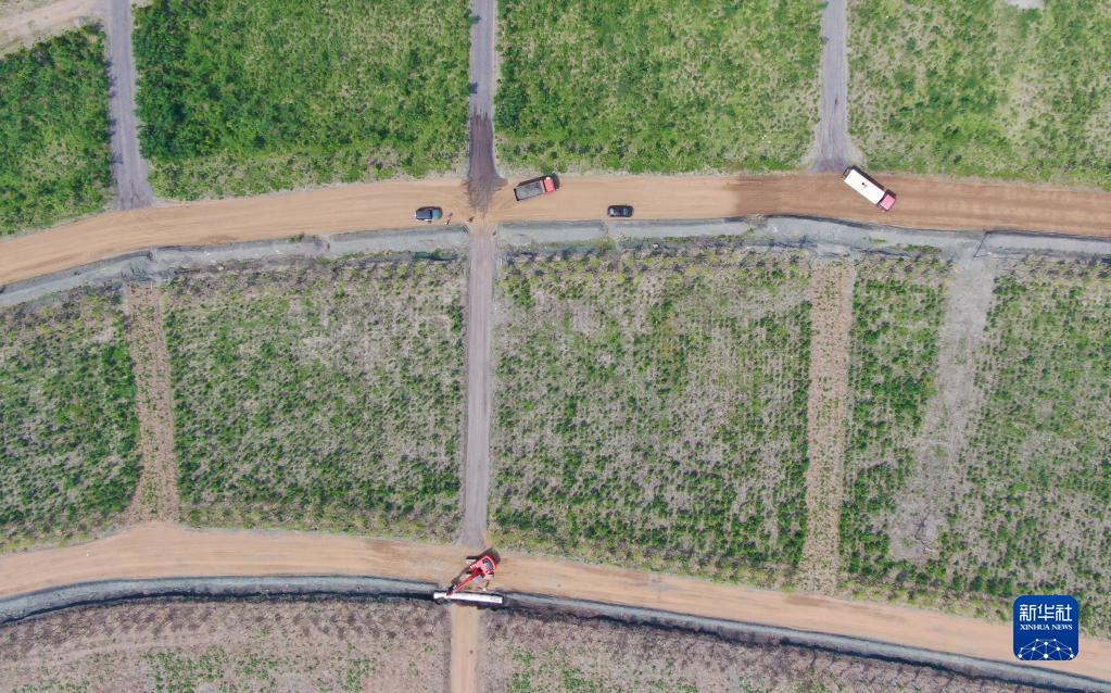 6月2日,工程车辆进行绿化作业(无人机照片)。