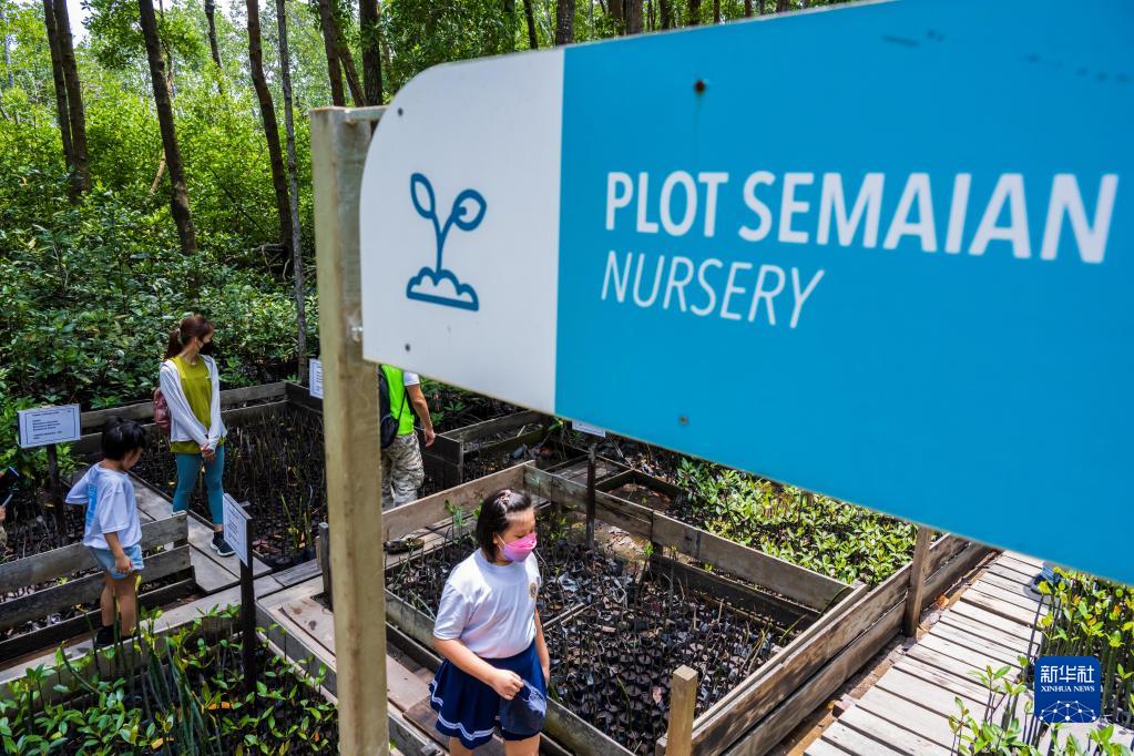 4月19日,在马来西亚柔佛州丹绒比艾国家公园,游客在红树苗圃参观。为了保护红树林,丹绒比艾国家公园内建立起红树育苗基地,计划每年育苗1万株。