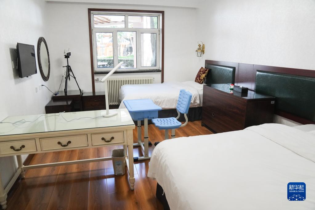这是在朝阳区一处封控区考点内拍摄的考生考试的房间(6月5日摄)。