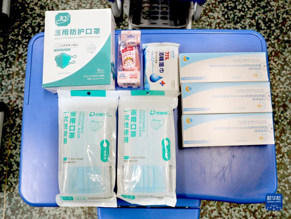 6月5日拍摄的上海市大同中学为返校学生们准备的防疫礼包中的物品。