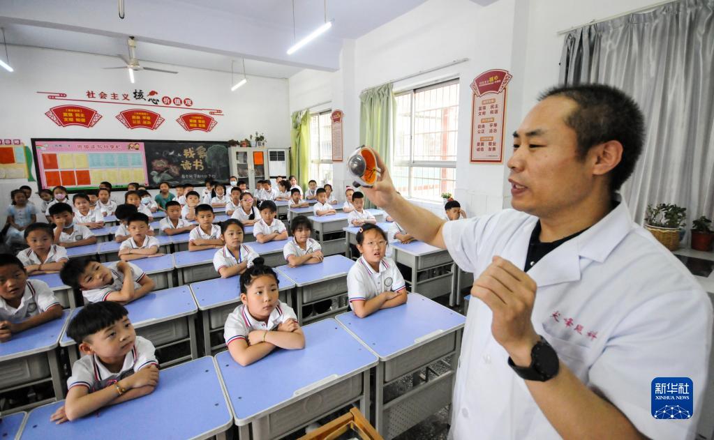 6月5日,河南省济源市一家眼科医院的医生为沁园路小学的学生讲解眼科知识。