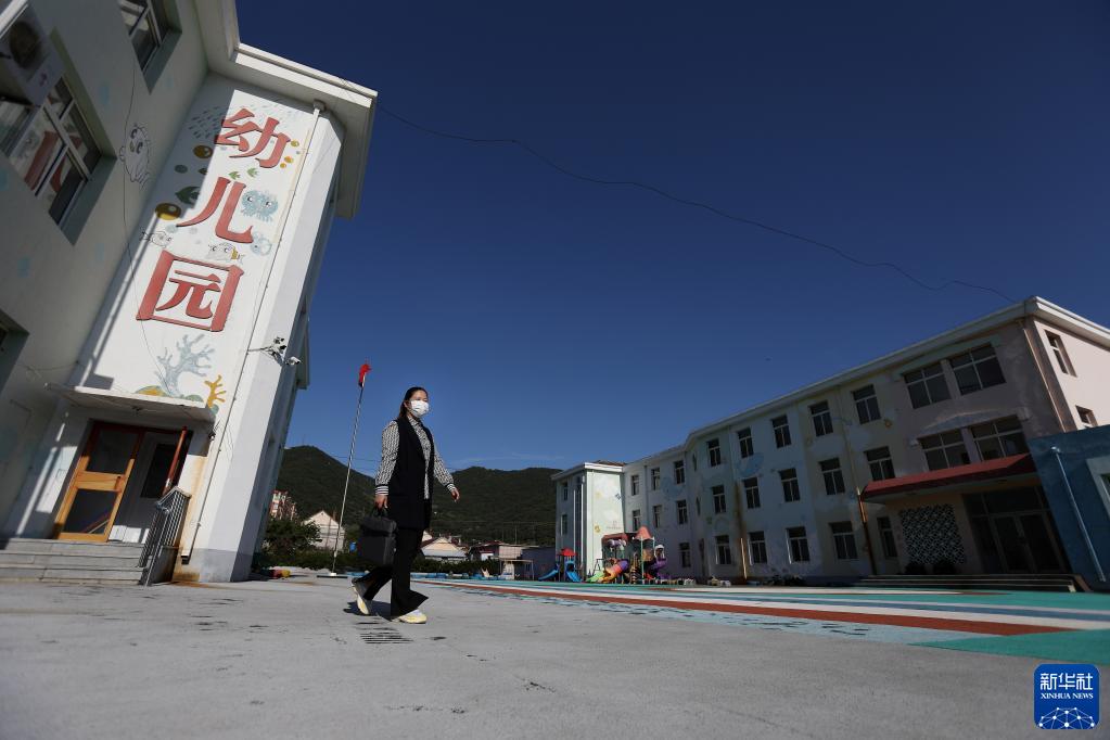 6月1日,孩子们放学后,牟苹丽结束了一天的工作,走出幼儿园。新华社记者 姚剑锋 摄
