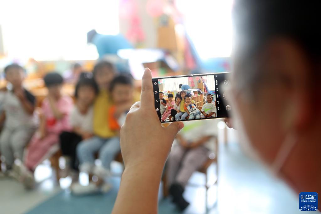 6月1日,牟苹丽为小朋友留下“六一”合影。新华社记者 王乙杰 摄