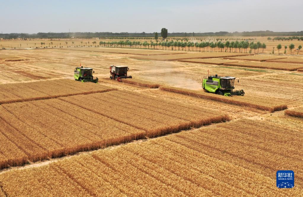 6月6日,河南省开封市尉氏县张市镇沈家村村民在农田抢收小麦。