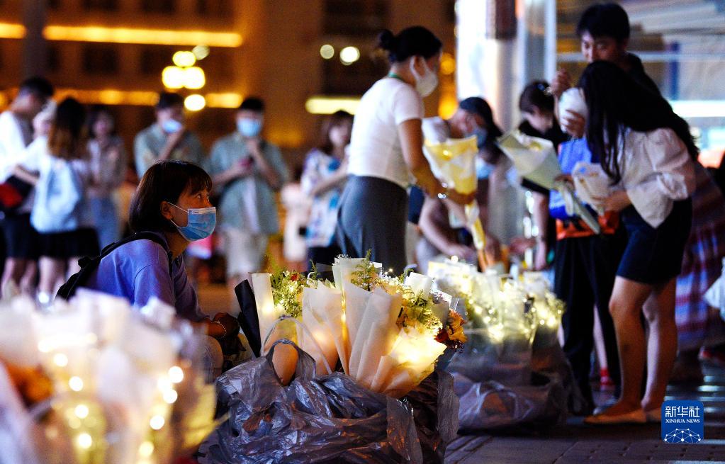 市民在西安钟楼附近购买鲜花(6月5日摄)。 新华社记者 刘潇 摄