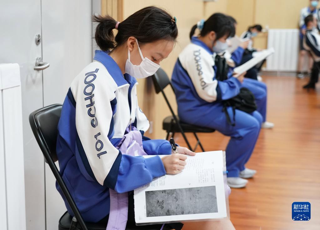 6月7日,在位于北京的农大附中考点休息区,考生在考前复习。