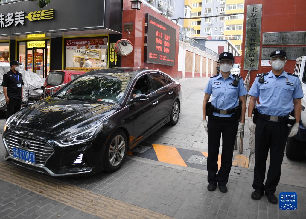 6月7日,运载高考试卷的车辆从北京市西城区教育考试中心驶出。